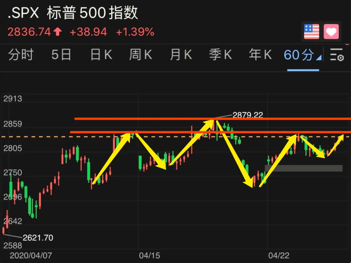 如果周K收在2840~2880这个区间范围,大盘仍然是保持横盘震荡的阶段,市场可能将更多重心放在炒作卫生事件社交隔离的解封上,这个时候可能要继续观察一周。