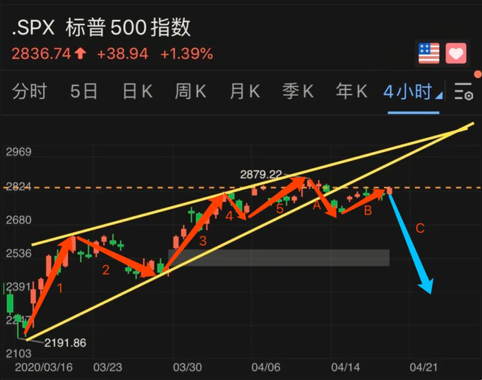 如果周K收在2840以下,那说明五大科技巨头已经无法再成为大盘上涨的动力,即使有美联储强势护盘,大盘向下的趋势也不会再有所改变。