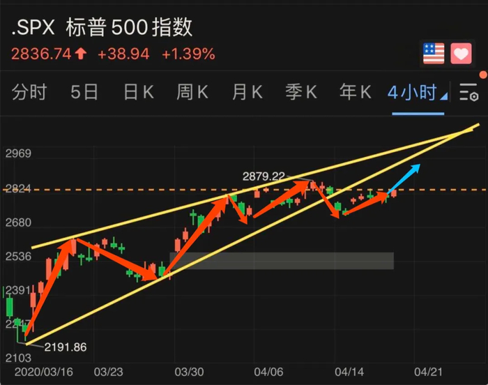 如果周K收在2880以上,大盘必然有继续上涨的动力,因为这个时候五大科技巨头的财报都已经陆续公布,短期也没有什么影响大盘走势的利空了。