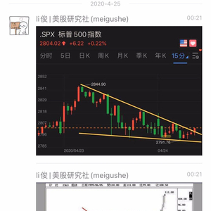 现在2840和2880是两个明显的压力位,突破2840,那必然会短期涨到2880附近,如果突破了2880,那大概率是要上3000的节奏,而这一切就看下周五大科技巨头财报。