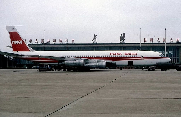 1980年一架来自美国环球航空的707客机在上海虹桥机场(图片来自wikipedia)波音的进击之路并未就此终止。