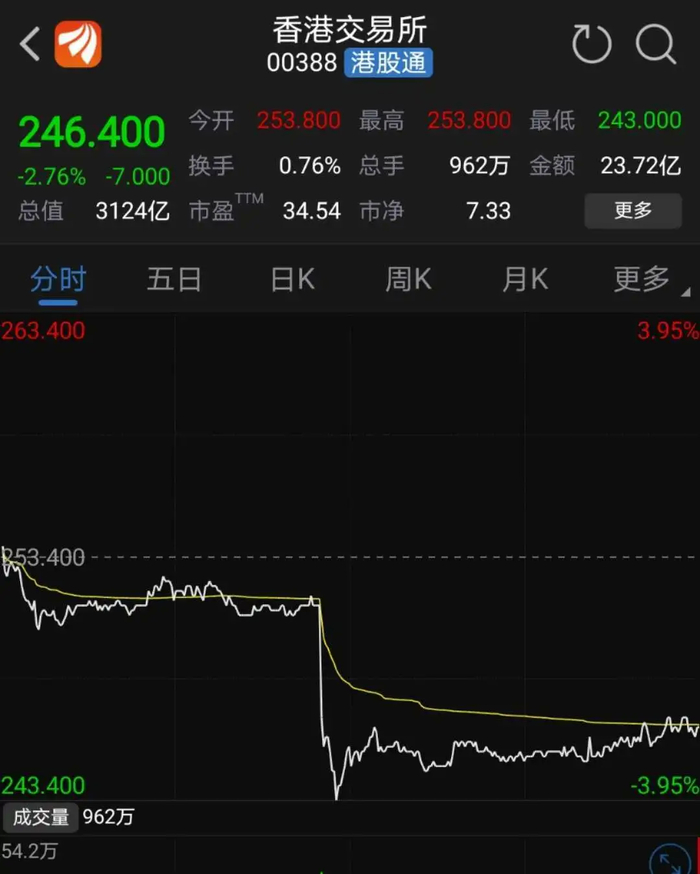 投资者直接用脚来说明,5月7日午后港交所股价一度跳水,跌幅最大近4%。