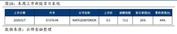 上周上市新股共1支,即新加坡公司RAFFLESINTERIOR,首日涨幅为26%。