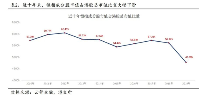 近期我们针对恒生指数代表性做了研究,发现随着在港上市的新经济比重上升,恒生指数代表性变差,恒生综合指数代表性更好。考察估值等指标应更多参考恒生综合指数。