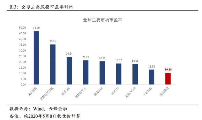 对比全球主要市场,恒生综指市盈率继续处于全球低位。