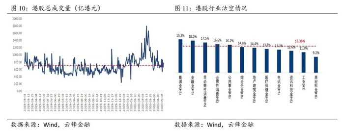 上周总成交额为3708.89亿港元,按周环比提高了83%,主要是因为上周港股仅有三个交易日。上周日均交易额为742亿,高于近一年的日均交易额708亿港元。