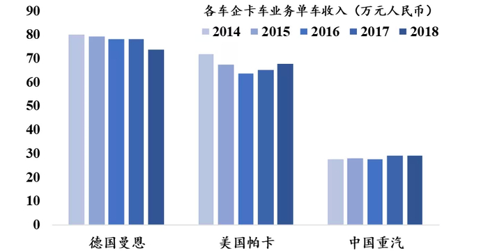 注:三家企业的卡车销售结构均以重卡为主,曼恩和帕卡的口径为卡车业务,中国重汽的口径为重卡业务;数据来源:MAN,PACCAR,中国重汽,国泰君安证券研究