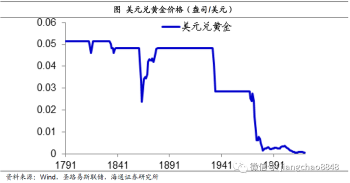 美元则诞生于1792年的《铸币法案》,当时1美元可以兑换0.05盎司黄金,而目前1美元只能兑换0.00058盎司黄金,美元自成立以来兑黄金已经贬值了98.9%,平均每年贬值2%。