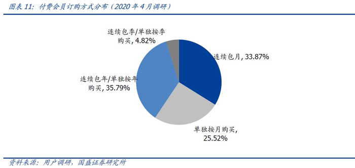 连续包月和包年成为主要订阅模式,付费用户订阅粘性较强