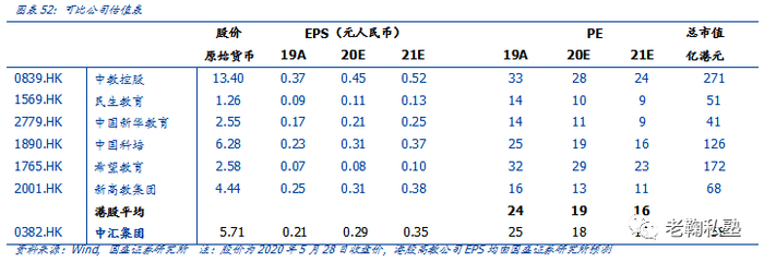 相对估值:我们选取港股民办高教板块的中教控股、民生教育、中国新华教育、中国科培、希望教育、新高教集团作为可比公司。综合可比公司的平均估值,2020年现价平均PE为19倍,考虑公司业绩成长性与区域龙头地位,应享有一定估值溢价,给予2020年22倍PE,对应目标价6.95港元。