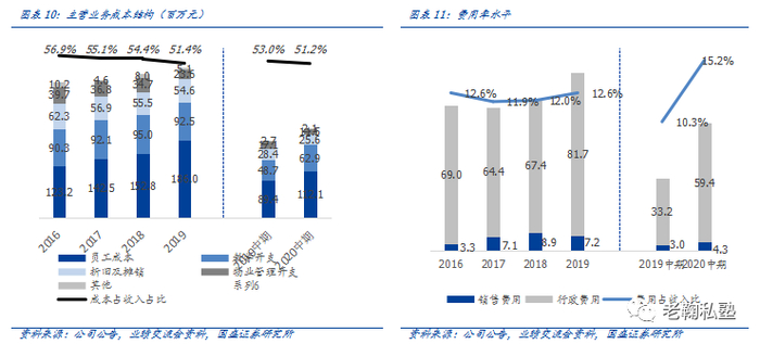 营业成本及毛利:公司主要成本为员工成本及教学开支,FY2019/FY2020H1营业成本3.62/2.14亿元,对应毛利率53.1%/51.2%。我们预计FY2020-FY2022公司毛利率分别为50%/51%/52%,对应营业成本4.24/4.87/5.45亿元。