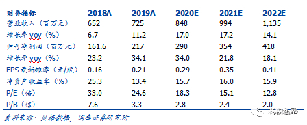 综上,我们预计公司FY2020-FY2022实现归母净利润2.90/3.54/4.18亿元,同增34.0%/21.8%/18.1%,对应归母净利率34.2%/35.6%/36.8%。