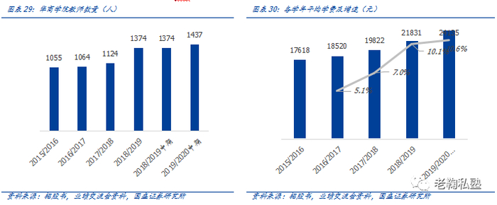 优质师资保障教学质量,平均学费稳步提升。公司通常率先根据教学计划扩充师资团队 ,近年来学校师资力量不断壮大,生师比由17/18学年的19:1降至19/20学年的17:1,有效保障教学质量。同时平均学费实现稳步提升,2019/2020学年中期平均学费提升至24135元,yoy+10.6%。