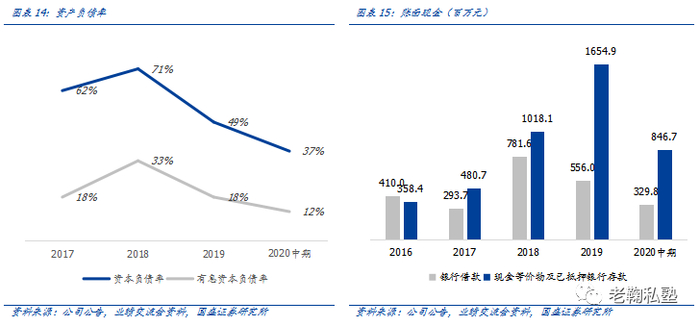 资产负债结构健康,在手现金充裕。资产负债结构逐渐优化,2020H1资产负债率、有息资产负债率分别降至37%、12%,同比分别大幅改善12pp、6pp。截止2020H1现金及等价物约11.8亿,充裕的现金为后续内生外延扩张提供保障。