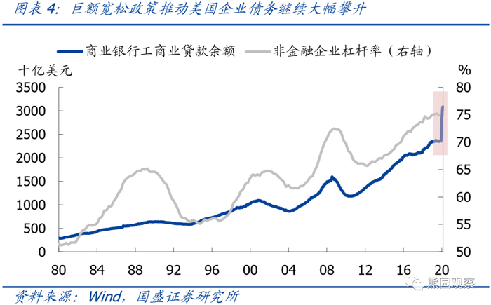 从历史上看,非暂时性失业在劳动力人口的占比与失业率走势几乎完全同步,与4月相比,5月美国非暂时性失业人数增加了38.5万人,在劳动力人口的占比由4月的1.6%提升至1.9%,这表明本月失业率的下降主要缘于经济解封,而非就业景气度的改善。在前期报告《后卫生事件时代,怎么看美国经济和美股?》中我们指出,得益于巨额的财政和货币宽松,当前美国企业债务风险尚未充分显露,随着宽松政策的边际递减,未来企业债违约大概率会增加,将对经济产生新一轮冲击,从而不利于就业市场的持续改善。在复工推进之下,我们认为短期内美国失业率可能延续小幅下降,但中长期就业状况很难持续大幅改善。