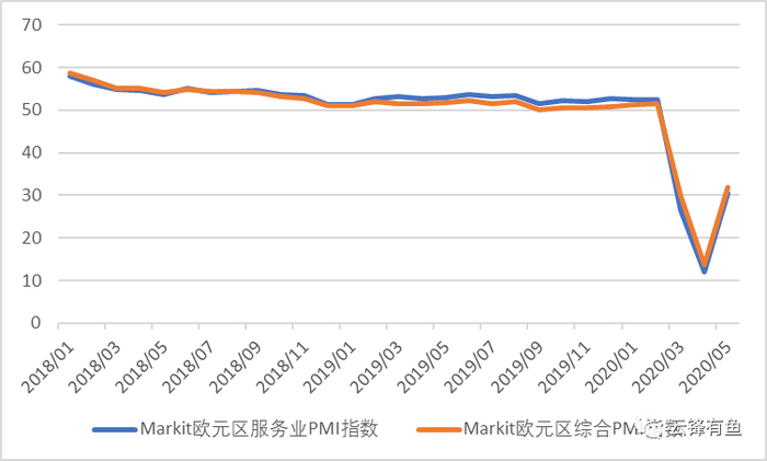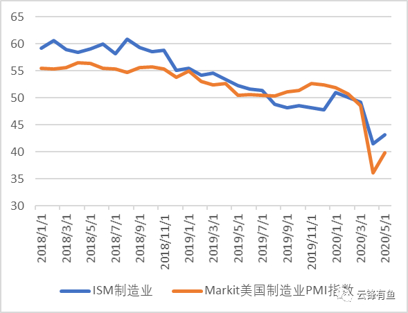 从行业采购经理人指数看,情况更是不容乐观。Markit服务业、综合PMI指数分别为30.5%和31.9%,虽然比4月份的12%、13.6%有所好转,但仍在萎缩。