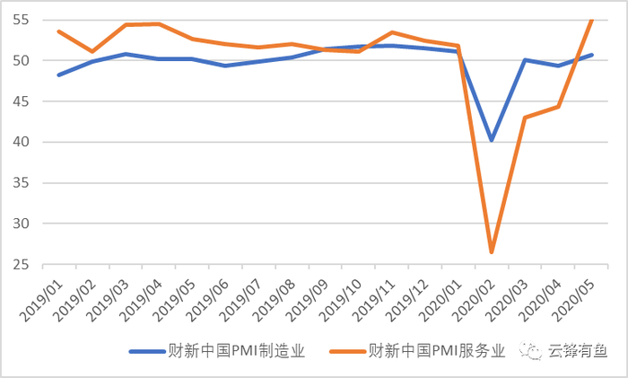 财新中国制造业和服务业PMI指数都已经回到荣枯线以上,分别在5月录得50.7%和55%,证明中国的制造业和服务业,尤其是服务业都呈发展的势头。