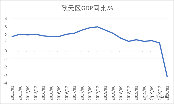 拥有19个成员国的欧元区2020年1季度GDP下降3.8%,反映出了为应对新冠疫情发布的封锁措施给经济带来的巨大冲击。法国和西班牙一季度GDP降幅皆超过了5%。