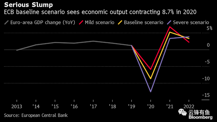 拉加德透露:欧央行对经济增长和通胀预期进行了全面下调。2020年经济可能会萎缩8.7%,然后在2021年反弹5.2%。她说通胀是该行刺激计划的终极依据。