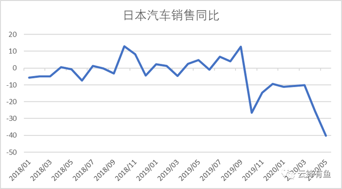 日本5月汽车销售同比下降40.2%,降幅超过前值-25.5%。
