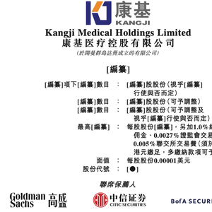 6月7日消息,医疗器械提供商康基医疗控股有限公司(简称“康基医疗”)(09997)过港交所聆讯,高盛、中信里昂及美银证券担任联席报荐人。