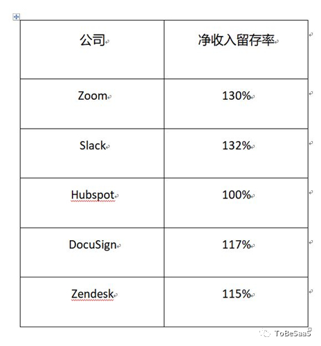 NDR=(beginning revenue+upgrades-downgrades-churn)/beginning revenue几家美国SaaS公司2020年Q1的NDR数据。