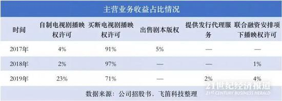 截至2016年、2017年及2018年12月31日止年度及截至2019年6月30日止六个月,共发行4、32、43及27部电视剧。其中,包含了77部买断电视剧,其播映权由第三方版权拥有人许可给予,包罗了都市爱情剧《星光璀璨》、《漂洋过海来爱你》、刑侦剧《卧底归来》、战争剧《爱国者》和喜剧《生逢璀璨的日子》等。