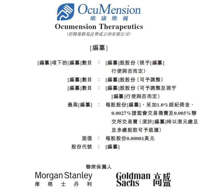 据港交所4月29日披露,Ocumension Therapeutics向港交所递交主板上市申请,摩根士丹利和高盛任其联席保荐人。Ocumension Therapeutics是一家中国眼科医药平台公司,专注于构建整合从研发、制造到商业化的眼科药物开发全周期专业能力于一体的眼科医药平台