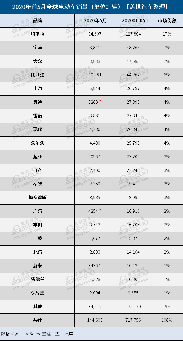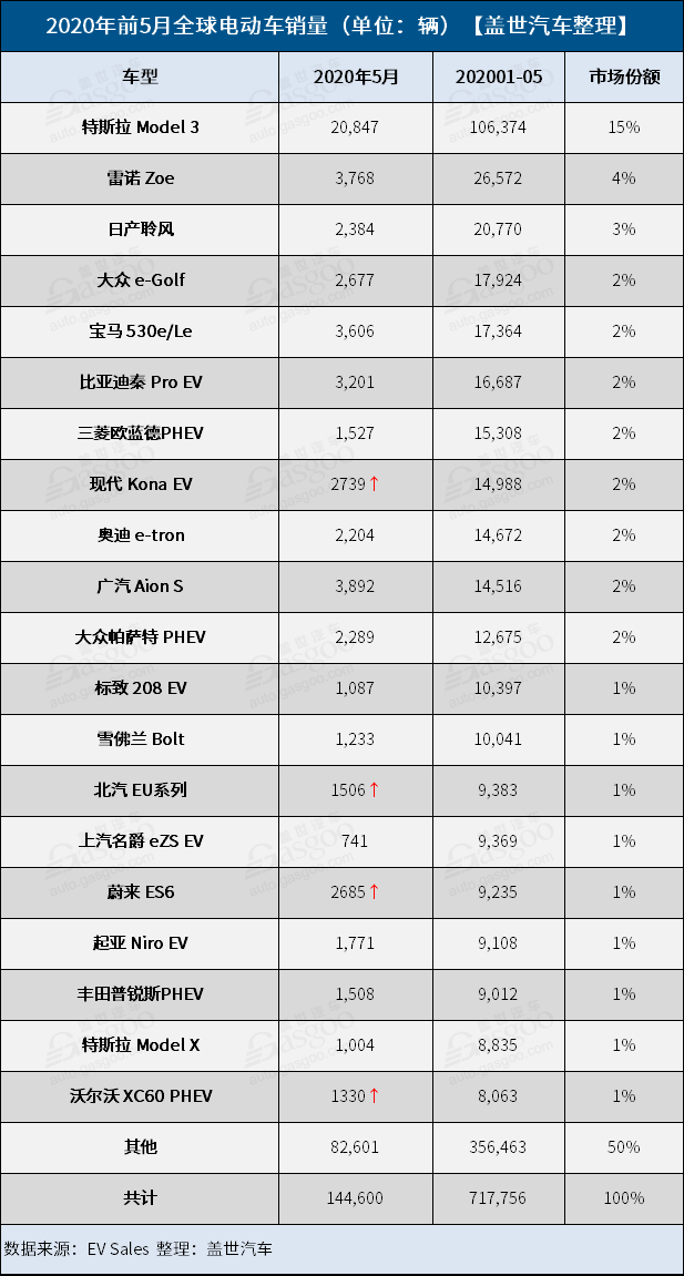 5月全球电动车销量Top 20榜单:蔚来(NIO.US)上榜