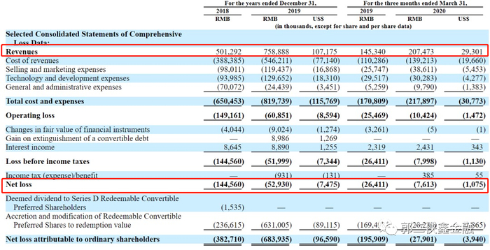 公司亏损也在逐渐收窄,2018,2019年及2020年第一季度,净亏损分别为1.45亿元、5293万元和760万元。