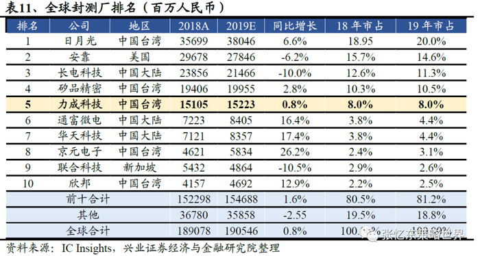 存储封测商的月营收观察:稼动回升,Q2营收或创新高,20H2需求有待观察。根据IC Insights统计,2019年全球封测行业营收预计为1900亿人民币,其中前十厂商占比约80.5%,份额环比下降0.7pppts。其中排名第五的力成科技(中国台湾)是以存储产品为主要业务,金士顿、东芝、美光都是重要股东,公司的营收趋势能作为行业需求的前瞻指标。