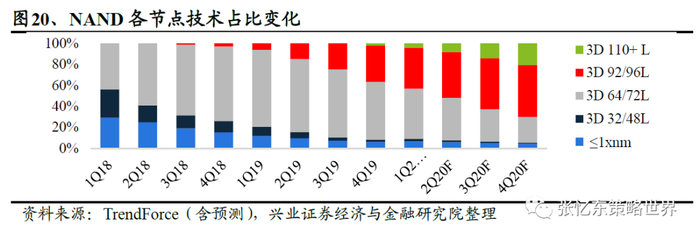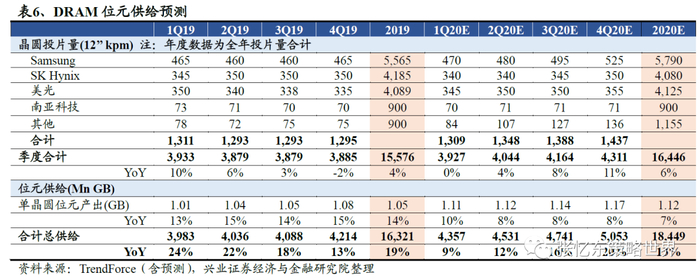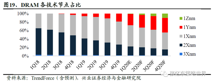 另一方面,制程升级成为产能增长的主要驱动,TrendForce预测,1Y与1Z nm制程在2020年末的出货占比将分别达到35%与10%(在存储行业,X通常代表高个位数,Y代表中个位数,Z代表低个位数)。