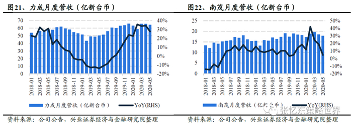 因存储产品于4月后逐步进入旺季,拉货动能续强,力成在5月份营收同比增加28%,创同期新高;20Q2营收预计环比增长约4%-5%。公司表示,系统级封装(SiP)、Flash或DRAM封测短期内尚未有大客户砍单;下半年仍需观察公共卫生事件发展状况,但在人工智能、5G通讯、智慧驾驶、高速运算等技术带动下,全年营收仍将持续增长。除此之外,南茂同样是专注于存储封装的厂商,DRAM和NAND Flash营收占比约5成。5月合计营收受公共卫生事件影响,降至年初迄今低点,但仍同比增长5%。公司预期20Q2营收或环比下降,稼动率落在76%-79%之间。展望下半年,公司指出存储行业以DRAM和NORFlash动能较强,NAND Flash需视手机需求而定。