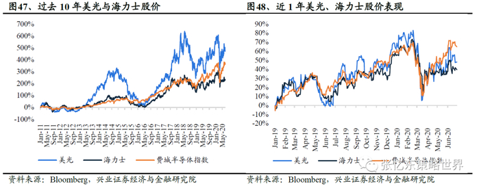 NAND价格进入上升通道,DRAM价格呈现反弹迹象。供求系边际改善,20H2存储价格或将持续攀升。我们以主力产品观察行业价格趋势,DDR4-8Gb多用于PC和手机,DDR4-32GB Registered-DIMM多用于服务器。TLC Flash 多用于消费级电子产品,而TLC SSD多用于企业级产品。可以观察到NAND整体价格已于19Q3开始趋势向上,而DRAM价格也在19Q4开始企稳,服务器DRAM触底上行。我们判断,2020H2服务器拉货动能或因云厂商IDC建设放缓而减弱。