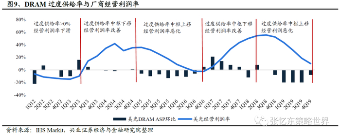 过度供给率是行业景气度重要的预判指标。商品属性的存储对于供求关系及预期极度敏感,微小的供求错配也可能导致价格大幅波动。观察历史数据,存储厂商的经营利润率与行业过度供给率高度相关。当过度供给率中枢上移时,经营利润率恶化,反之亦然。同时我们发现,行业景气反转通常会先出现位元出货环比反弹,然后ASP逐步回升,因此可以通过行业过度供给率来判断存储价格的走势。