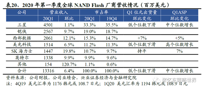 服务器需求强劲推动20Q1存储市场重回增长,同比增长4%。20Q1全球存储市场销售额约为280亿美元,环比持平,同比增长4%,终结了连续5个季度下滑。其中,三星营业利润环比增长15%,SK海力士净利润扭亏为盈,西部数据、铠侠也结束了连续亏损。然终端需求或受到短期压制延后释放,行业上行周期节奏可能缓于历史水平。