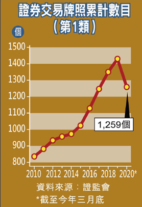 微臣资产管理财富管理总监梁彦颖指,过往拥有1号牌及9号牌(可提供资产管理)的券商甚有市场价值,成交价曾经扯高至逾千万元,但随着今年疫情冲击经济,市场气氛急转直下,‘放盘价’较年前急泻。