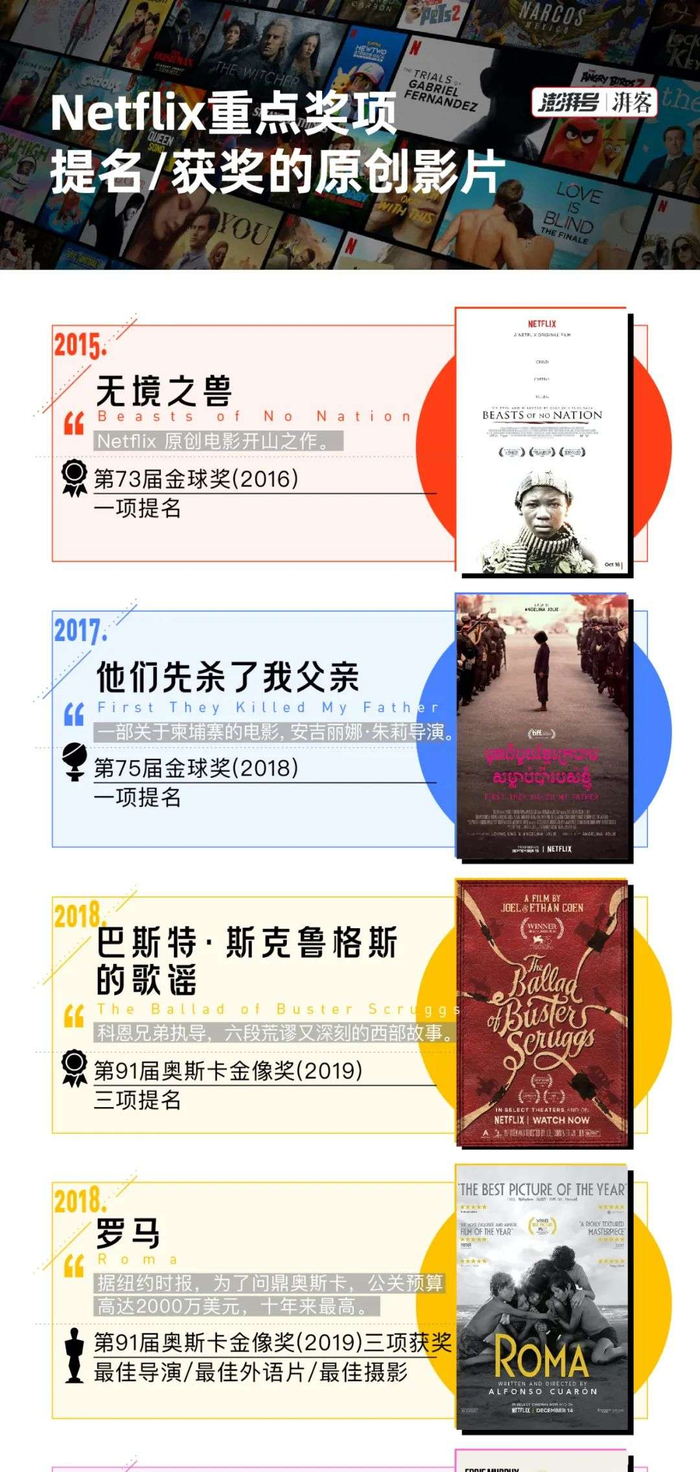 前者是中小成本文艺属性电影,依靠精品内容保证Netflix原创品牌,并向国际大奖和传统电影公司发起挑战。后者是中高等投资影片,对标传统影院腰部电影体量。