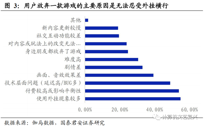 云游戏能够减少外挂、脚本等,最大程度保证游戏的公平性。传统游戏模式下,游戏运行在终端完成,用户可以通过下载外挂、修改器、脚本等方式来获得不合理的优势,这给其他游戏玩家带来的很大的困扰。由于云游戏摆脱客户端约束,游戏在云端服务器运行,可以杜绝游戏外挂等作弊手段,游戏内平衡性得到一定改善,提高用户的游戏体验。