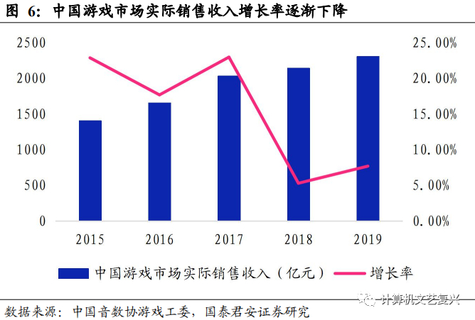 技术的更新换代,推动游戏产业升级和规模增长。由于电信号与电视机的普及和发展,最早出现在中国的是电视游戏;随着信息技术的不断发展,电脑逐渐走进千家万户,端游兴起,取代了电视游戏;互联网、Flash 以及 Unity 3D 引擎的革新推动页游乃至后来的大型网络游戏的发展。而过去的十年中,随着3G、4G的发展,手机游戏风靡一时;5G时代已经到来,在云技术的帮助下,游戏产业将再次升级革新。回顾信息技术与游戏产业的发展路径,从主机游戏到端游到页游再到手游,技术的发展升级,从内容形态、市场规模等方面改变着游戏产业。