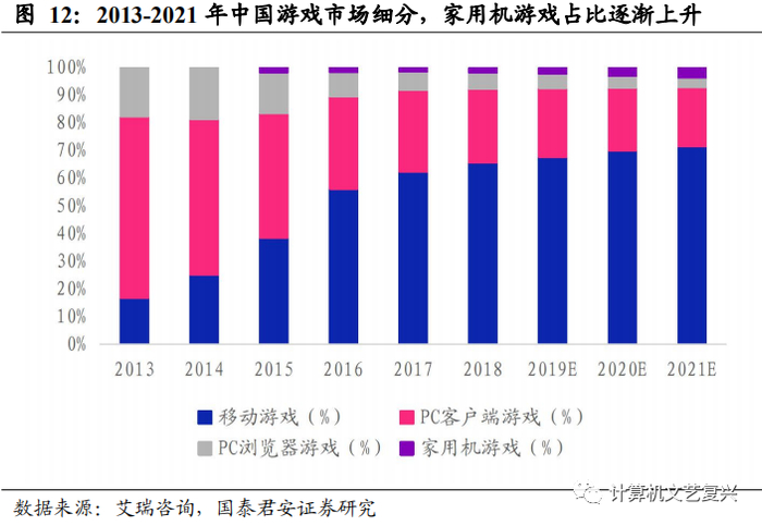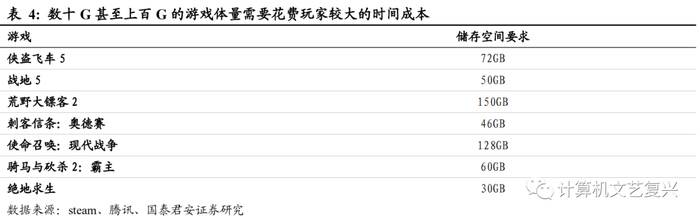 2、主机游戏云化将带来用户增量。过去受限于主机游戏设备价格昂贵以及2000-2013 年的游戏机设备禁令,没有培养用户的习惯,导致主机游戏在中国迟迟得不到发展。云游戏的到来,一方面将解决主机游戏设备价格高昂的问题,解除硬件束缚的问题,另一方面未来大量主机游戏将会登陆云游戏平台,使得玩家们有机会接触到主机游戏,并且只需通过云游戏平台与基本的外设即可体验主机游戏,降低主机游戏的门槛。