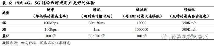5G的发展带来低延迟、高带宽,提高用户游戏体验。5G技术的诞生能够解决之前云游戏的高延迟、画质低的问题,避免用户不得不在流畅度与画质中二选一。同时5G的大规模应用,一方面将解决移动端云游戏的束缚,既能实现低时延的传输,又能保证游玩体验的持续稳定,另一方面5G大规模的应用也能推动流量成本的降低,带来增量用户。