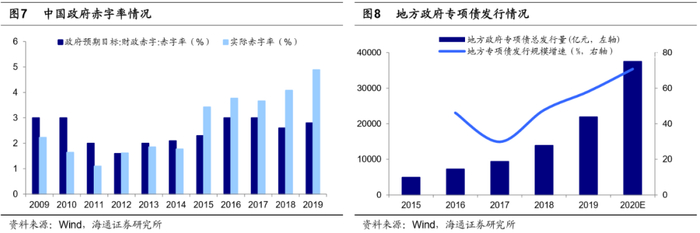 这轮牛市进入3浪上涨阶段,从单轮驱动走向双轮驱动。我们一直提出19年1月4日上证综指2440点是新一轮牛市的起点,牛市有两个大逻辑:第一,大类资产配置转向权益,资金不断流入股市;第二,中国转型不断深入,企业盈利最终回升,详见《现在类似2005年-20190217》、《再论19年类似05、12年:牛市蓄势-20190319》、《再论19年类似05年:金改VS股改-20191119》、《我们终将俯瞰现在——再论当前中国类似1980年代美国-20191217》等。过去一年半第一个逻辑已经不断兑现,对应牛市孕育期,上证2440点至3288点为牛市1浪上涨,3288点-2646点是牛市2浪回调。现在第二个逻辑正在不断兑现,即基本面数据回升,故牛市进入3浪上涨阶段。首先,第一个驱动的轮子,即资金入市,仍在发力。去年底我们估算今年A股净流入资金超过万亿,详见《增量资金望过万亿——2020年股市资金供求分析-20191125》,今年上半年已经超过7000亿,下半年货币政策或将维持偏松格局,资金仍将继续流入股市。此外,今年卫生事件使基本面形态由19Q3-Q4的圆弧底变为20Q1再砸深坑,打乱了库存周期和盈利见底回升的节奏。随着卫生事件得到控制,前期暂缓的生产和消费有望在下半年得到回补。2月开始财政、货币政策更积极,地方政府专项债较去年增加1.6万亿,计划发行抗疫特别国债1万亿,整体广义赤字较去年增加了3.6万亿,狭义赤字率3.6%,预计广义赤字率8%,叠加利率不断下行,政策最终会刺激需求回升。借鉴历史经验,政策见效4-10个月,三季度宏微观基本面数据将明显回升。20Q1全部A股归母净利润同比增速为-24%,我们预计Q2/Q3/Q4三个季度单季同比增速分别为-3%、13%、20%,全年A股净利同比有望达到0-5%。往后展望,20Q3-21Q2宏微观基本面数据有望都比较靓丽,企业利润同比或均在两位数以上,将是牛市3浪上涨的窗口期,当然市场具体的节奏要结合其他因素一起分析,如未来通胀对货币政策的影响、未来中美关系的演变、卫生事件会否出现二次高峰等等。详见《牛市扩散——2020年中期A股投资策略-20200705》。