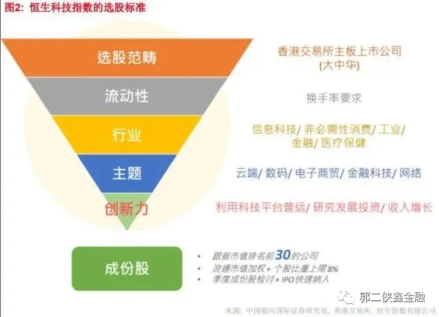 恒生科技指数的选股范畴,主要涵盖与科技主题高度相关的香港上市公司,包括网络、金融科技、云端、电子商贸及数码业务。