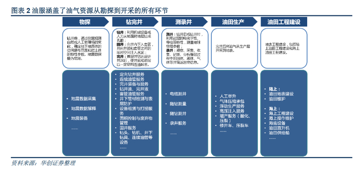 在此期间,油服公司为满足石油公司的需求,逐步发展成为能够覆盖油田开发全部环节的综合性油田服务公司。油服公司推出了“战略联盟”、“总包”或“一体化服务”等新型合作方式,好比家庭装修的“一价全包”,省心省力。