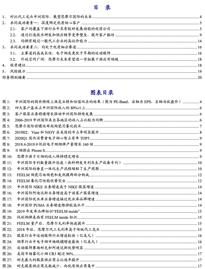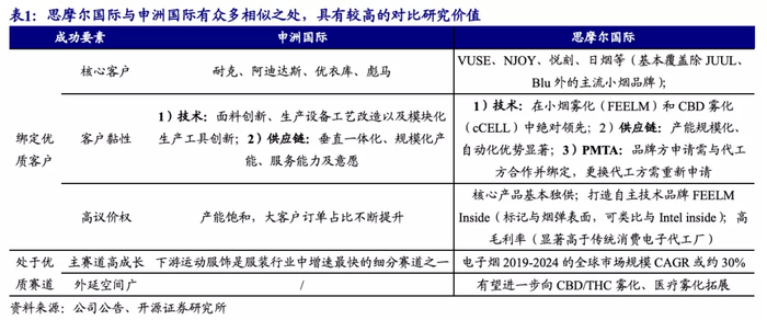1)两个公司的客户均覆盖了下游有良好发展动能的核心优质品牌。申洲国际包括耐克、阿迪达斯等。思摩尔国际则覆盖了Vuse、NJOY等核心雾化小烟品牌。