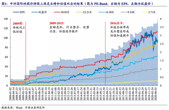 回溯申洲国际的股价上涨,可以发现这是业绩和估值双击的结果。申洲国际的EPS在此期间稳步提升超3.5倍。而持续稳定的业绩增长,也让市场对申洲国际的认知逐步跳脱出传统的代工企业,并更多认识到其背后深厚的竞争壁垒。进而在港股这个偏低估值的市场中,申洲国际的PE(TTM)也由2009年的10倍左右,逐渐上升至2018-2019年的30倍左右。