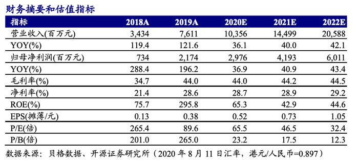 因此,通过与十年百倍股申洲国际进行对比,我们更加坚定得看好思摩尔国际的核心价值。维持盈利预测不变,预计公司2020-2022年归母净利润为29.76/41.93/60.11亿元,对应EPS分别为0.52/0.73/1.05元,当前股价对应PE为66/47/32倍,维持“买入”评级。