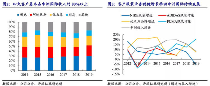 2)海内外完善布局的规模化产能:根据我们估算,截止2019年末,申洲国际的成衣产能已达到174.5万/天,处于行业领先水平。并且公司新建工厂的产能还处于不断释放的过程中,申洲国际规模化产能的优势有望逐步提升。