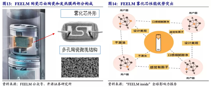 凭借FEELM技术,思摩尔基本是下游大客户陶瓷雾化芯产品的独家供应商,并且从技术优势上看FEELM陶瓷雾化芯短期内很难被取代: